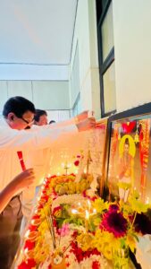 The ceremony commenced with the lighting of the traditional oil lamp, followed by the Dhanvantari Pooja and Agastya Pooja. Subsequently, the Shishyopanayana Samskara was performed to symbolize the initiation of the new trainees into their advanced academic journey.