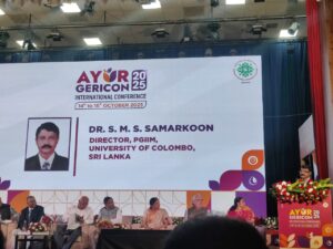 Professor SMS Samarakoon-Director/PGIIM, Delivers Keynote Address at AYUR GERICON 2025, ITRA Jamnagar, India